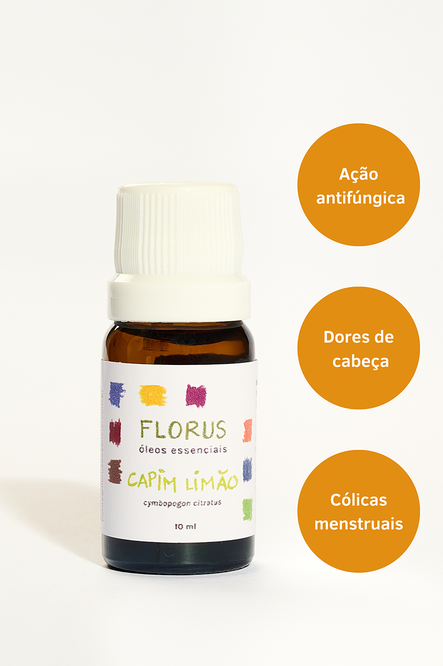 O óleo essencial de Capim Limão funciona como antibacteriano, antifúngico, calmante e sedativo. Seu uso pode ajudar no combate de febre e dores de cabeça e auxiliar na prevenção de espasmos musculares e de cólicas menstruais, proporcionando maior bem-estar no decorrer dos ciclos femininos.