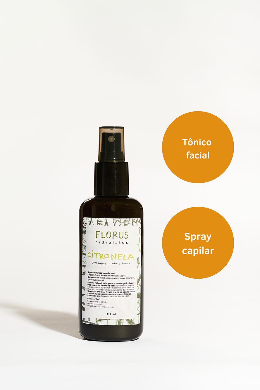 Para o cabelo: O hidrolato de citronela pode ser usado no couro cabeludo para ajudar a combater a oleosidade e promover um cabelo mais saudável, além de ajudar a repelir piolhos.