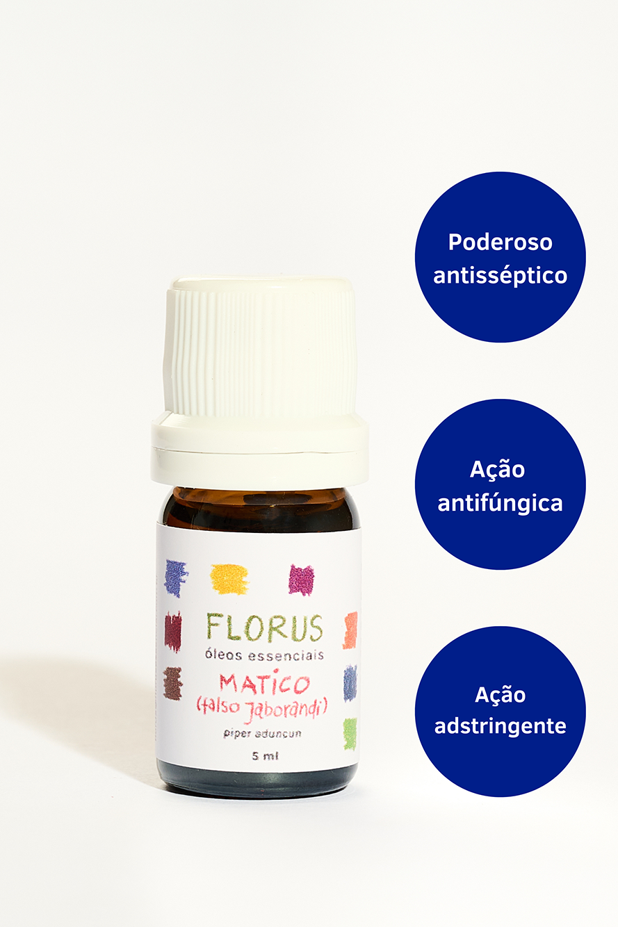 O óleo essencial de Matico tem ação antifúngica, adstringente e cicatrizante, podendo atuar em casos de tinea e micoses. Além disso, é considerado estimulante do baço, fígado e vesícula e um ótimo aliado para a proteção do estômago. Por sua ação bactericida, esse óleo é indicado contra agentes causadores da gonorreia e de cáries dentárias. O uso do hidrolato de Matico é um excelente tônico capilar, conferindo viscosidade e brilho para os cabelos.