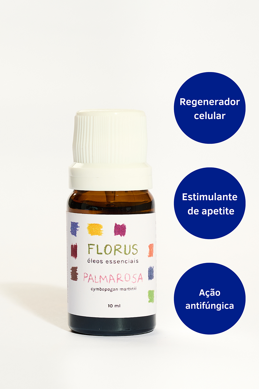 O óleo essencial de Palmarosa possui propriedades antifúngicas, antibacterianas e antissépticas. Pode ser um ótimo aliado na regeneração e clareamento da pele, atuando contra rugas, flacidez, dermatite, cicatrizes e envelhecimento precoce. O uso do óleo também pode atuar como estimulante de apetite e auxiliar na diminuição da febre.